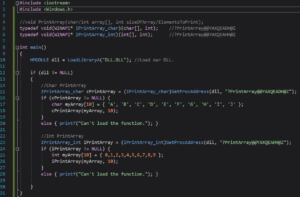 IPrintArray_char cPrintArray = (IPrintArray_char)GetProcAddress(dll, "?PrintArray@@YAXQEADH@Z");