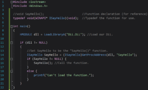 ISayHello SayHello = (ISayHello)GetProcAddress(dll, "SayHello");